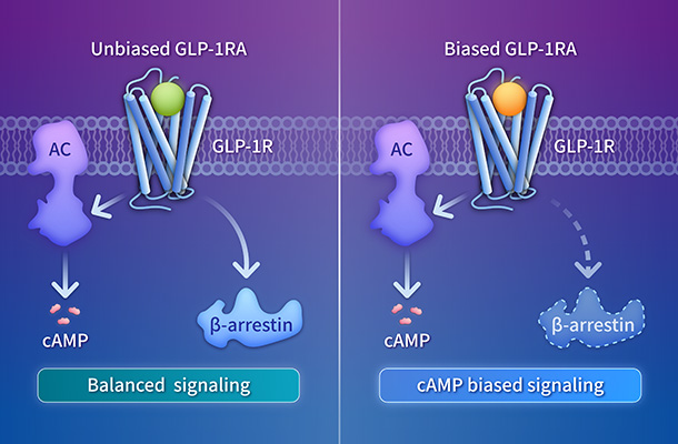 BiasVantage? 偏向型激動劑發(fā)現(xiàn)平臺利用基于結構的合理設計及全面的信號傳導分析,打造療效增強、脫敏程度降低的精準療法。該平臺開發(fā)信號選擇性配體,通過降低脫敏程度延長受體活性,從而比非偏向型方法獲得更佳的治療效果。